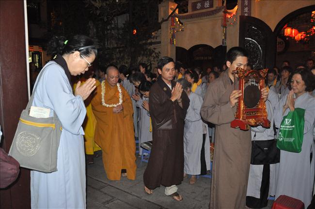 Tiếp theo, Ban nghi lễ đã cung rước Hòa thượng trụ trì và chư tôn đức quang lâm Đại hùng bảo điện để cử hành nghi lễ.