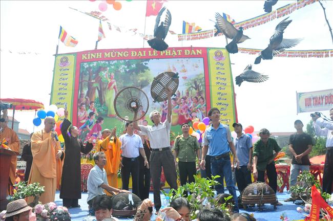 Cuối buổi lễ, BTS GHPGVN huyện Hoài Đức cùng đại diện chính quyền đã làm lễ phóng sinh Chim bồ câu và bóng bay cầu nguyện cho đất nước hòa bình, chúng sinh an lạc.