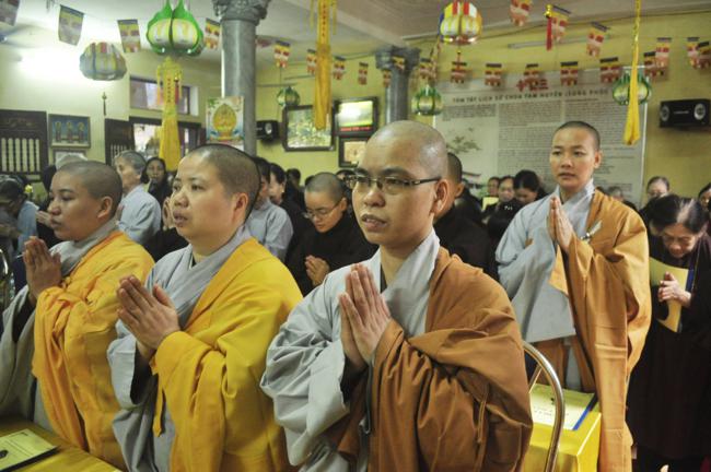 Chứng minh buổi lễ có: Ni sư Thích Đàm Xuân – Ủy viên BTS GHPGVN thành phố Hà Nội, Trưởng BTS GHPGVN quận Thanh Xuân, Trưởng Ban tổ chức đại lễ cùng chư tôn đức Ni trong BTS GHPGVN quận Thanh Xuân.