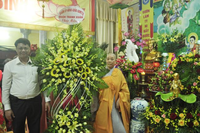 Về phía chính quyền có: ông Nguyễn Minh Tiến – Phó bí thư thường trực quận ủy quận Thanh Xuân; ông Khổng Minh Thảo – Chủ tịch Ủy ban Mặt trận Tổ quốc quận Thanh Xuân; bà Trần Thị Nhiên – Phó chủ tịch UBND phường Thượng Đình cùng đại diện các cơ quan ban ngành sở tại và đông đảo nhân dân Phật tử địa phương đã về tham dự buổi lễ.