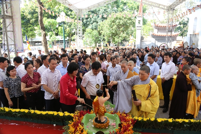 Cuối buổi lễ, Chư tôn đức Tăng Ni, các vị khách quý cùng nhân dân, Phật tử đã thực hiện nghi thức dâng hương, niệm Phật, cử hành nghi lễ tắm Phật, cầu nguyện quốc thái dân an, cầu cho thế giới hòa bình, đất nước thịnh vượng.