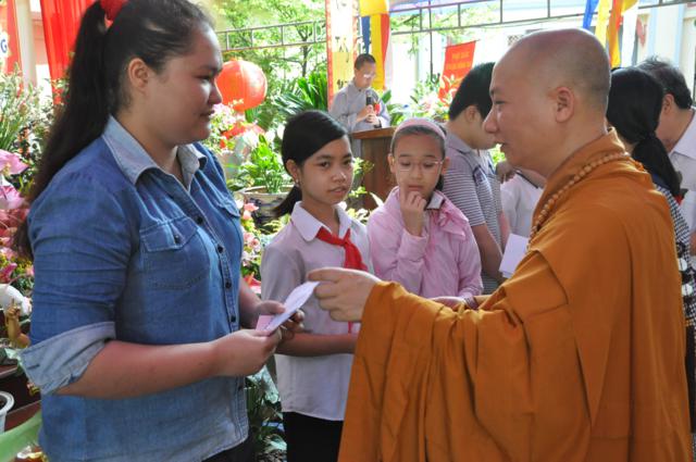 Cũng trong dịp này TT.Thích Chiếu Tuệ và Ni Sư Thích Đàm Minh đã tặng quà động viên các cháu có hoàn cảnh khó khăn trong Quận.