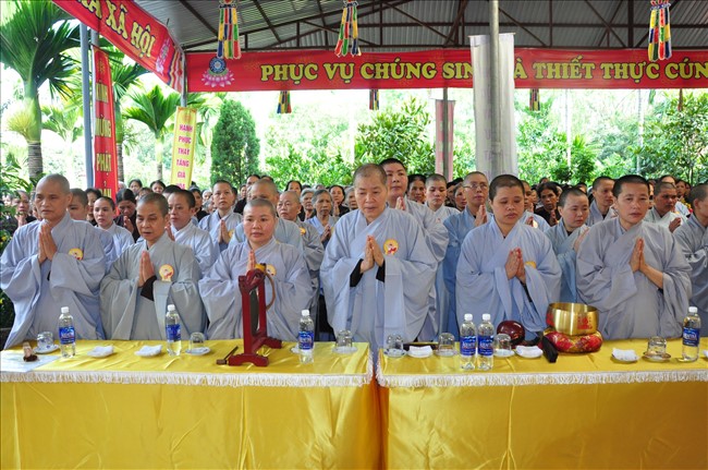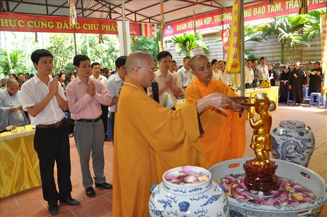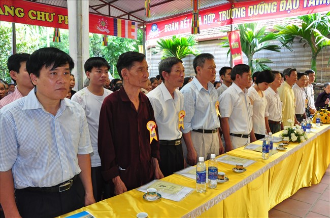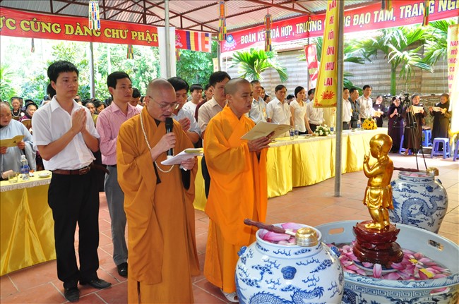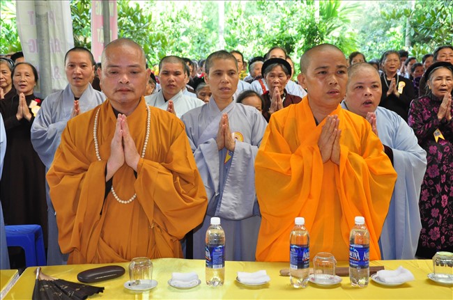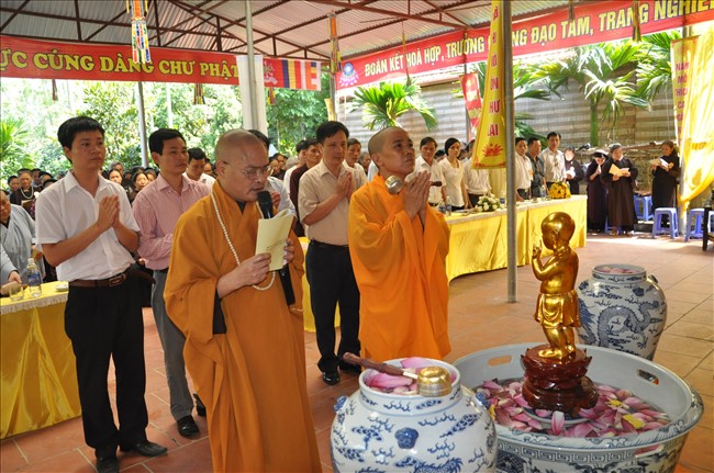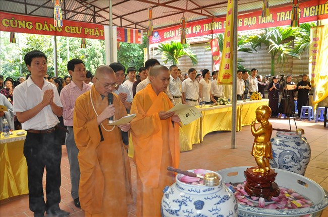 Chứng minh buổi lễ có: Thượng tọa Thích Thanh Chính – Ủy viên HĐTS TW GHPGVN, Phó thường trực BTS GHPGVN Thành phố Hà Nội; Thượng tọa Thích Minh Tuấn -Trưởng BTS GHPGVN quận Hà Đông cùng chư tôn đức Tăng Ni trong Ban trị sự GHPGVN quận Hà Đông.