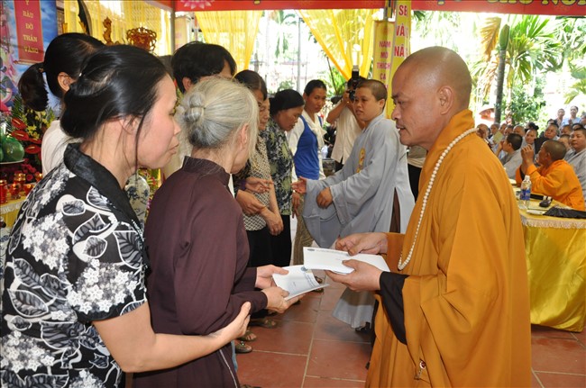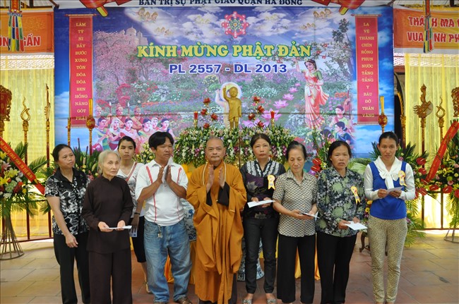 Đặc biệt, trong dịp này, Ban trị sự GHPGVN quận Hà Đông đã trao những phần quà cho những hoàn cảnh khó khăn trong địa bàn quận theo tinh thần “Ban vui cứu khổ” của Đạo Phật.