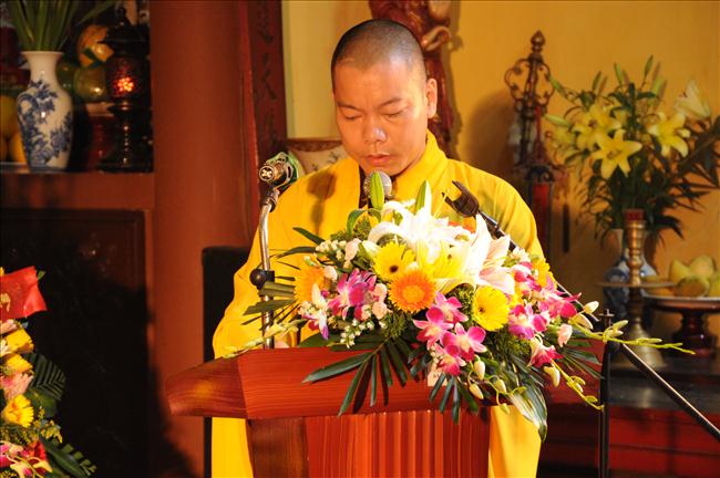 Chứng minh buổi lễ có: Thượng tọa Thích Thanh Hưng – Phó BTS GHPGVN Thành phố Hà Nội, Trưởng BTS GHPGVN quận Hoàn Kiếm cùng chư tôn đức Tăng Ni đến từ các tự viện trong quận Hoàn Kiếm.