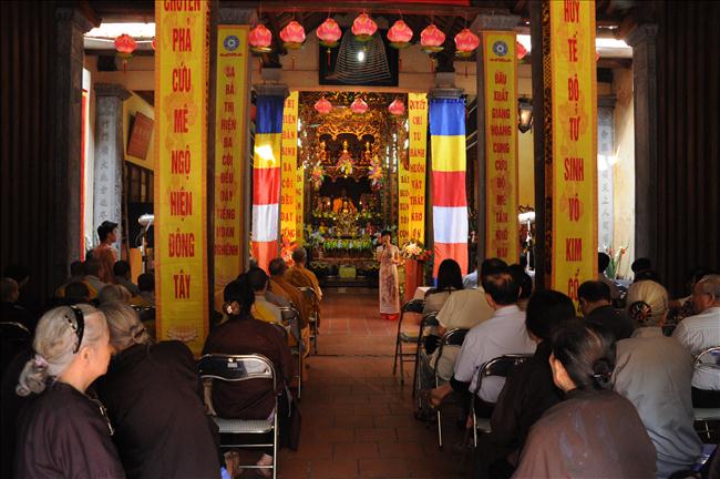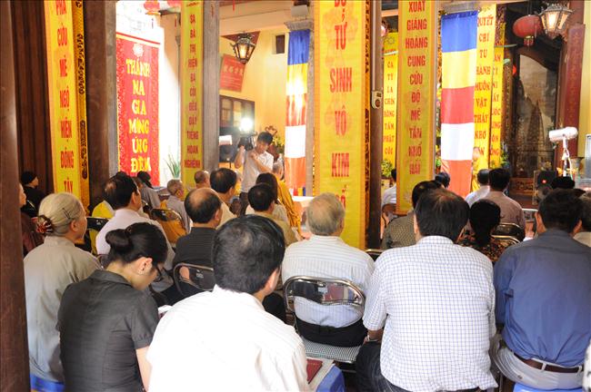 Chứng minh buổi lễ có: Thượng tọa Thích Thanh Hưng – Phó BTS GHPGVN Thành phố Hà Nội, Trưởng BTS GHPGVN quận Hoàn Kiếm cùng chư tôn đức Tăng Ni đến từ các tự viện trong quận Hoàn Kiếm.
