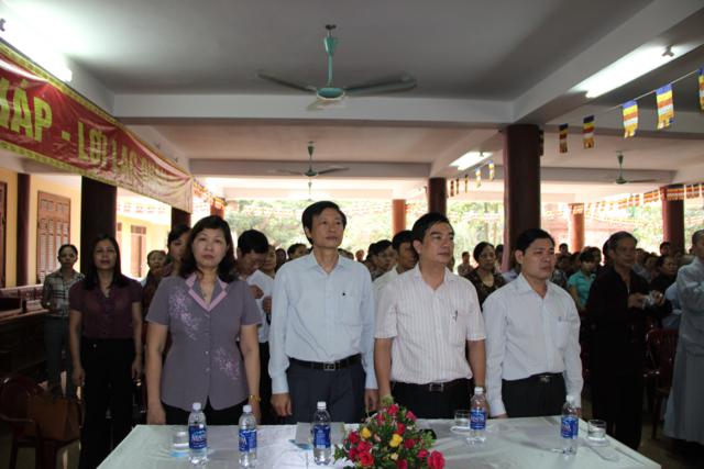 Đến chứng minh và tham dự có: Thượng tọa Thích Thanh Nhã – Ủy viên Hội đồng Trị sự Trung ương Giáo hội Phật giáo Việt Nam, Phó Ban trị sự Thành hội Phật giáo Hà Nội. Đến tham dự còn có ông Bùi Tuấn Ngọc, Phó trưởng  Ban T ôn giáo TP. Hà  Nội , Ông Nguyễn Mạnh Hà – Ban dân tộc UBMTTQ, Bà Trần Thị Ngọc – Phó Chủ tịch UBND Quận Long Biên, Ông Nguyễn Huy Để – Phó phòng Tôn giáo, Dân tộc Ban Dân vận Thành uỷ,  cùng đại diện các ban ngành đoàn thể quận Long Biên.