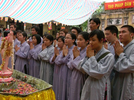 CLB Thanh thiếu niên Phật tử chùa Quán Sứ đã tới tặng hoa và chúc mừng.