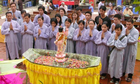Sau khóa lễ tụng kinh, ĐĐ. Thích Chân Tín đọc ý nghĩa Phật đản. Nhân dịp này, TT. Thích Thanh Điện làm lễ quy y cho hàng trăm Phật tử.