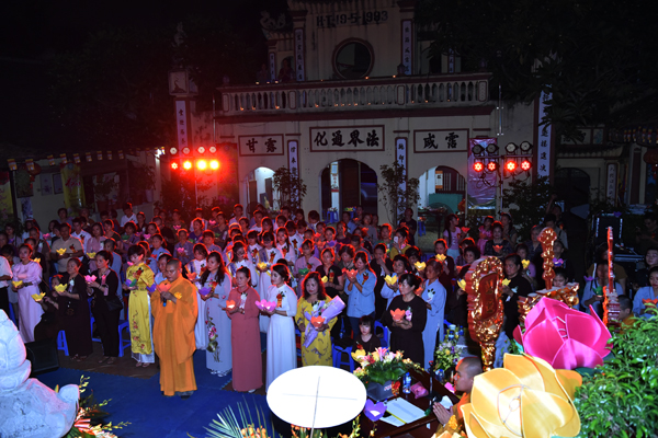 Sau nghi lễ bông hồng cài áo, Chư tôn đức và các phật tử đã thực hiện nghi thức truyền hoa đăng cầu nguyện cho quốc thái, dân an, trong không khí linh thiêng tràn đầy hỷ lạc .