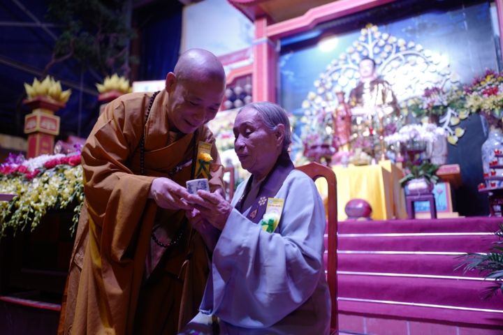 Đặc biệt, tại buổi lễ, Hòa thượng trụ trì đã dâng chén trà tri ân và tặng thân mẫu của mình bó hoa sen thơm ngát, tinh khiết thắm đượm nghĩa tình như tấm lòng hiếu thảo của Hòa thượng gửi tới song thân. Tuy thân phụ của Thầy đang bệnh không có mặt tại buổi lễ, nhưng có lẽ sẽ cảm nhận được những ân tình của một người con tuy đã rời bỏ cuộc sống thế tục, cắt ái từ thân, nhưng không bao giờ quên ơn chín tháng cưu mang – ba năm bồng ẵm, những năm tháng được cha mẹ nuôi dạy để trở thành một vị Hòa thượng như ngày hôm nay.