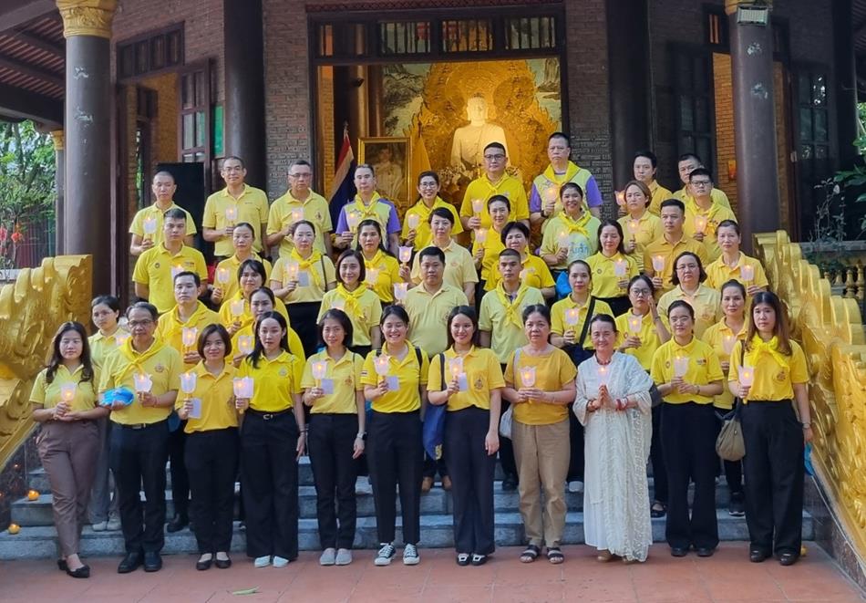 Trước buổi lễ trang nghiêm bà Urawadee Sriphiromya – Đại sứ Vương quốc Thái Lan tại Việt Nam và Cán bộ Đại sứ quán Thái lan tại Hà Nội trong trang phục áo polo màu vàng gắn biểu tượng Quốc Vương tập trung tại Điện Tam Bảo (Bảo Tháp). Tham dự có đại diện Trung ương Hội Hữu nghị Việt Nam – Thái Lan và Hà Nội.