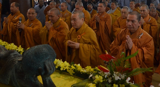 ( Hòa thượng Thượng Bảo Hạ Nghiêm cùng chư Tôn đức Tăng Ni và hội chúng dâng hương bạch Phật)