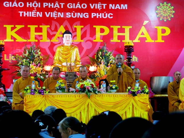 Mở đầu buổi lễ Khai Pháp, Thầy Thích Tâm Thuần-Trụ Trì Thiền viện Sùng Phúc đã có những lời pháp biểu khai mạc với ý nghĩa sâu sắc tới đại chúng tham dự, đồng thời Thượng tọa trụ trì còn gửi gắm tâm nguyện mong cho năm nay hội chúng “chí thành phát nguyện học Phật Pháp, nhiệt tình học Phật pháp hơn nữa” và “Nhờ lời phát nguyện mà các Phật tử sắp xếp được mọi công việc để nghe pháp, để dành thời gian tư duy quán chiếu lời Phật dạy, thẩm thấu giá trị của Pháp Phật, vận dụng vào tu tập hằng ngày hằng giờ để hóa giải các phiền não tham sân, hưởng được pháp lạc vi diệu của Pháp Phật.”