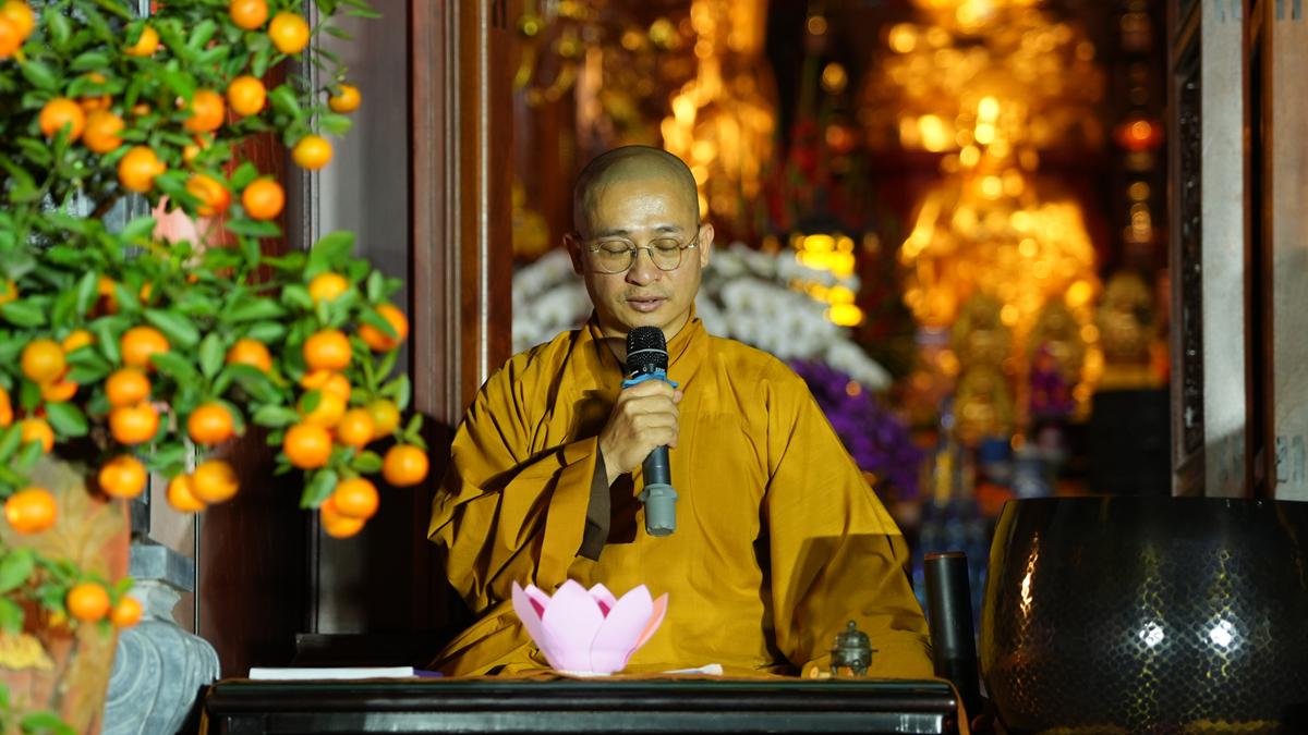 Thượng tọa cũng nhấn mạnh, trong truyền thống Phật giáo Đại thừa, người Phật tử khi tụng niệm không chỉ dừng lại ở lời cầu nguyện cho bản thân và gia đình, mà quan trọng hơn là phát khởi đại nguyện vì lợi ích tha nhân. Cầu nguyện phải đi đôi với phát nguyện; phát nguyện phải hướng đến cộng đồng, xã hội, quốc gia, và tất cả chúng sinh. Đó chính là tinh thần Bồ Tát đạo – lấy hạnh nguyện phụng sự làm nền tảng tu tập. Khi tâm nguyện được mở rộng vượt khỏi lợi ích cá nhân, thì công đức mới viên dung, và mùa xuân an lạc mới thực sự bắt đầu từ chính nội tâm mỗi người.