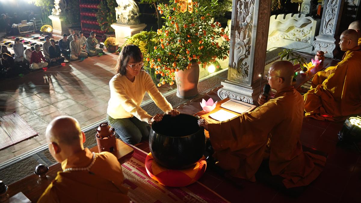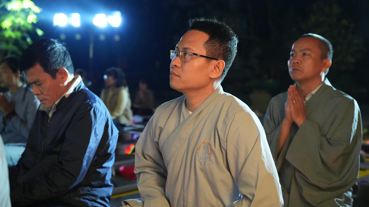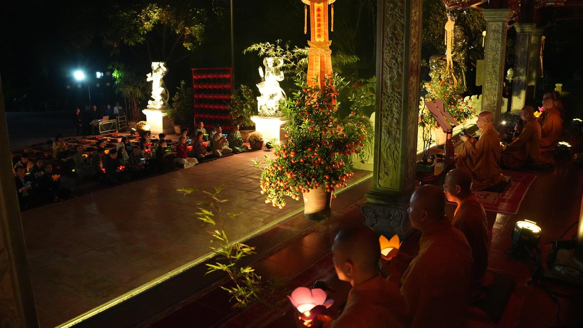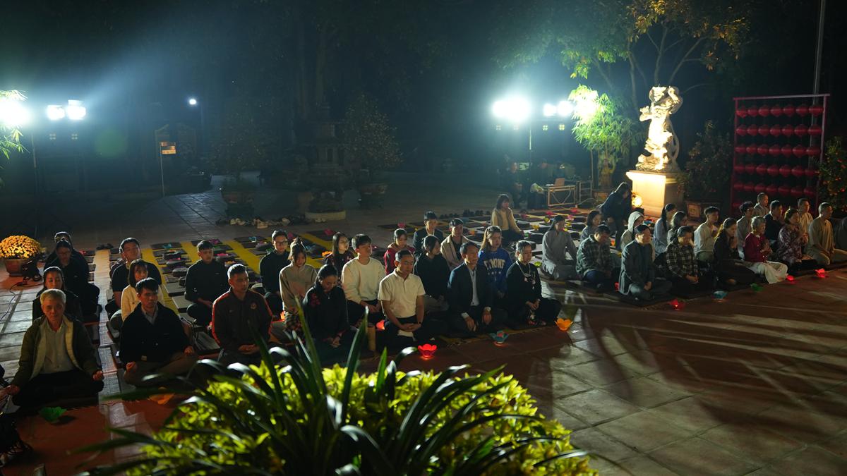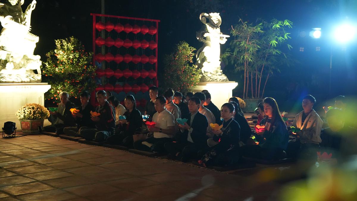 Trong ánh sáng lung linh của hàng trăm ngọn đèn hoa đăng, không gian cửa thiền như lắng lại trong niềm thành kính. Mỗi ngọn đèn được thắp lên không chỉ là ước nguyện cho một năm mới bình an, mà còn biểu trưng cho ánh sáng của từ bi và trí tuệ. Ánh sáng ấy soi rọi tự tâm, nhắc nhở mỗi người quay về quán chiếu thân – khẩu – ý, chuyển hóa phiền não, vun bồi hạt giống từ bi.