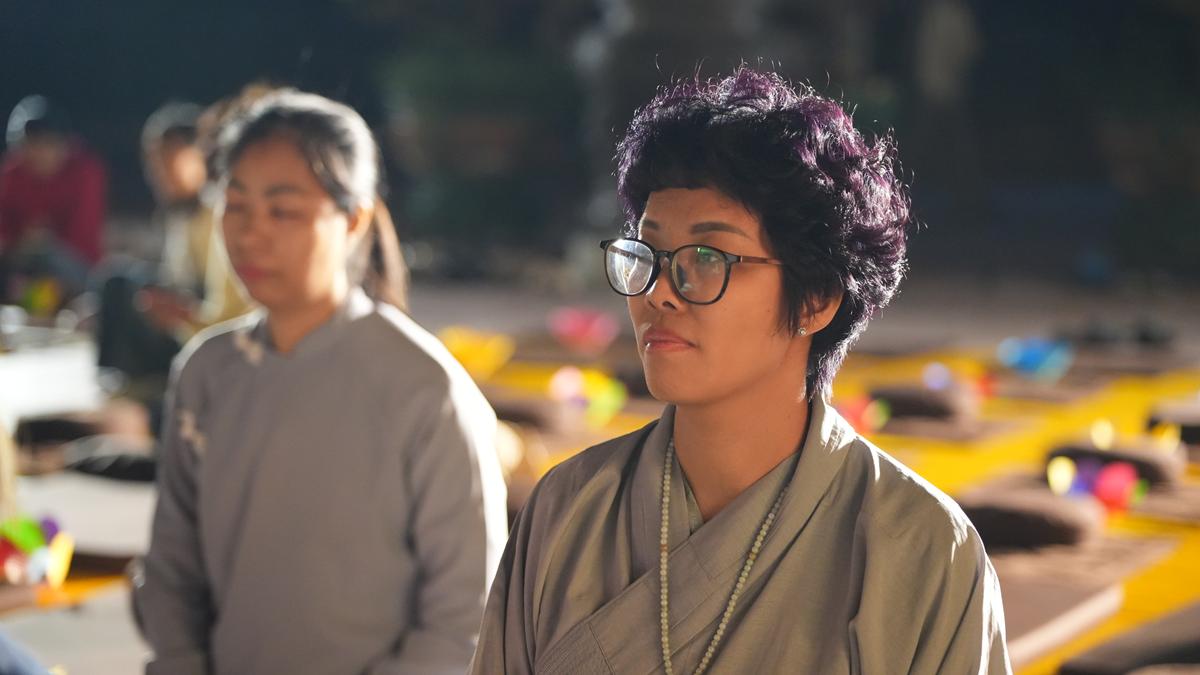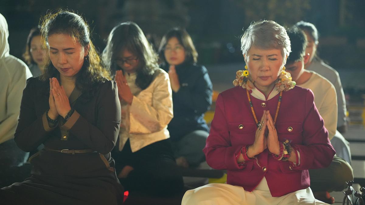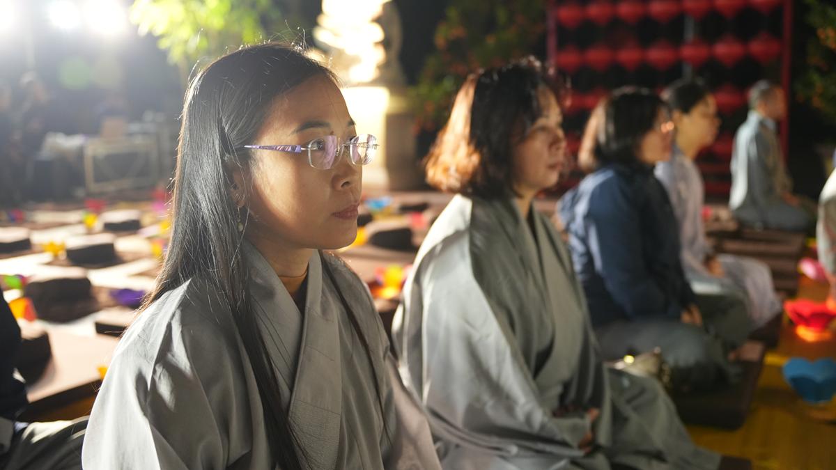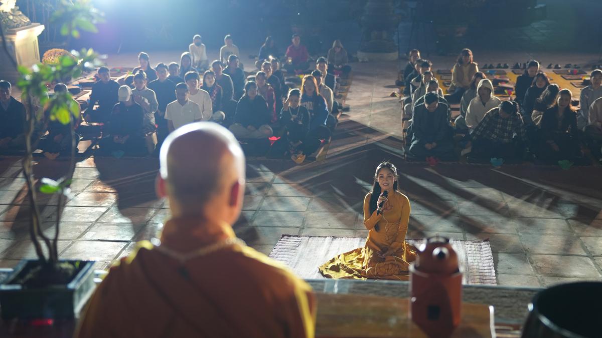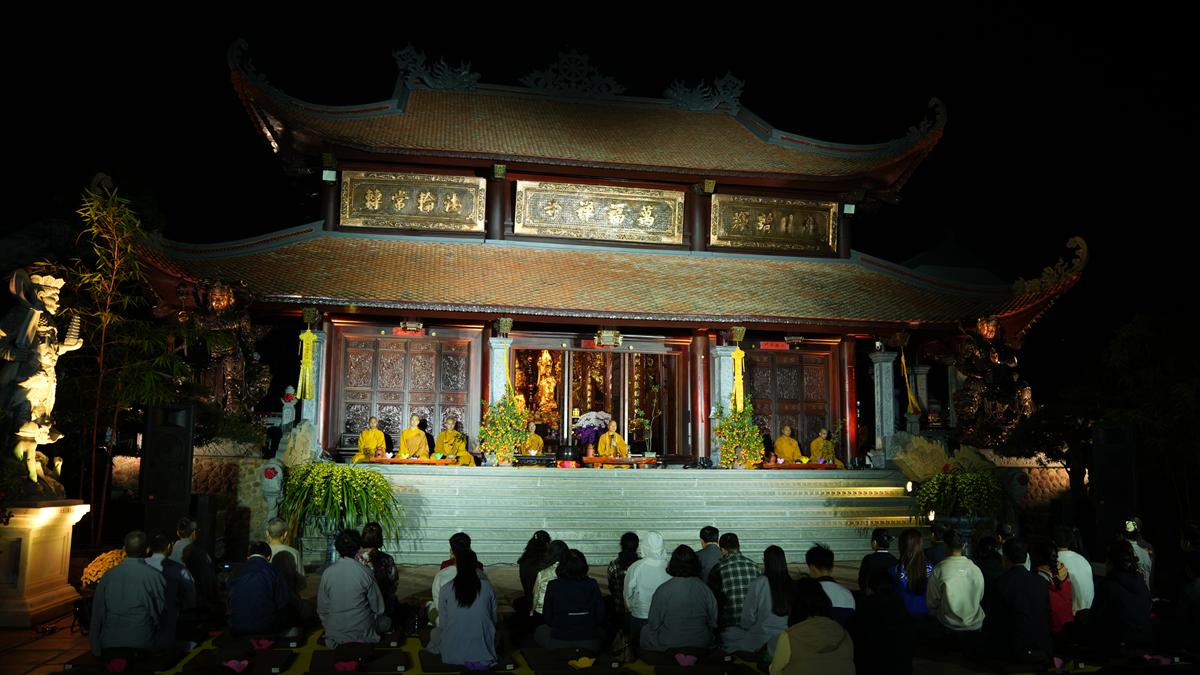 Trong ánh sáng lung linh của hàng trăm ngọn đèn hoa đăng, không gian cửa thiền như lắng lại trong niềm thành kính. Mỗi ngọn đèn được thắp lên không chỉ là ước nguyện cho một năm mới bình an, mà còn biểu trưng cho ánh sáng của từ bi và trí tuệ. Ánh sáng ấy soi rọi tự tâm, nhắc nhở mỗi người quay về quán chiếu thân – khẩu – ý, chuyển hóa phiền não, vun bồi hạt giống từ bi.