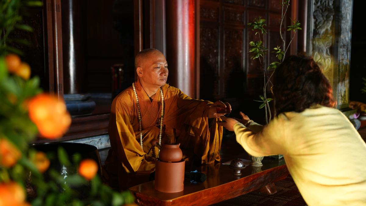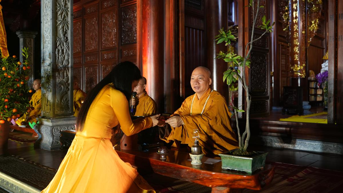 Bên cạnh đó, chương trình còn có phần “bói Kiều” đầy ý vị. Lấy cảm hứng từ kiệt tác Truyện Kiều của đại thi hào Nguyễn Du, mỗi Phật tử chọn cho mình một câu Kiều như một lời nhắc nhở đầu xuân. Nếu trong dân gian, bói Kiều từng được xem là một hình thức dự báo cát hung, thì tại đây, ý nghĩa được chuyển tải theo tinh thần tu học: mỗi câu thơ trở thành tấm gương phản chiếu nội tâm, gợi mở sự chiêm nghiệm và tự điều chỉnh hành vi.