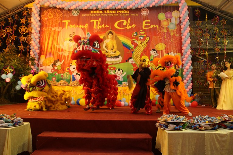 Buổi lễ Tết Trung thu đã có nhiều chương trình văn nghệ đặc sắc được biểu diễn, các màn biểu diễn múa lân, các em được phá cỗ vui Tết Trung thu, rước đèn ông sao. Ngoài ra, Ban Tổ chức mỗi em đến tham dự chương trình còn được một phần quà gồm: bánh trung thu, nước ngọt, lồng đèn, truyện tranh nhân quả, lược sử đức Phật Thích Ca tặng cho các em thanh, thiếu niên, nhi đồng Phật tử nhân dịp tết trung thu năm nay. Buổi lễ đã thành tựu viên mãn và để lại ấn tượng sâu sắc cho hàng ngàn thanh thiếu niên nhi đồng phật tử, bà con nhân dân địa phương tham dự.