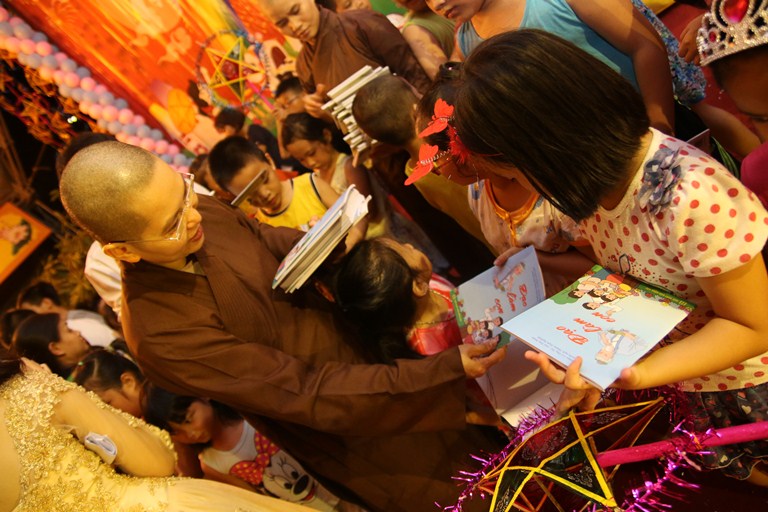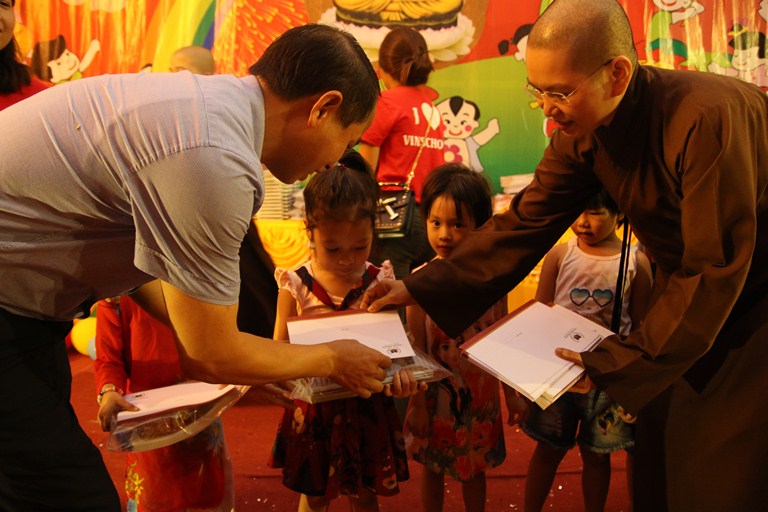 Buổi lễ bắt đầu là nghi lễ niệm Phật cầu gia hộ, Sư thầy Thích Đồng Hòa đã lên phát biểu khai mạc buổi lễ Tết Trung thu “ Trung thu cho em”.