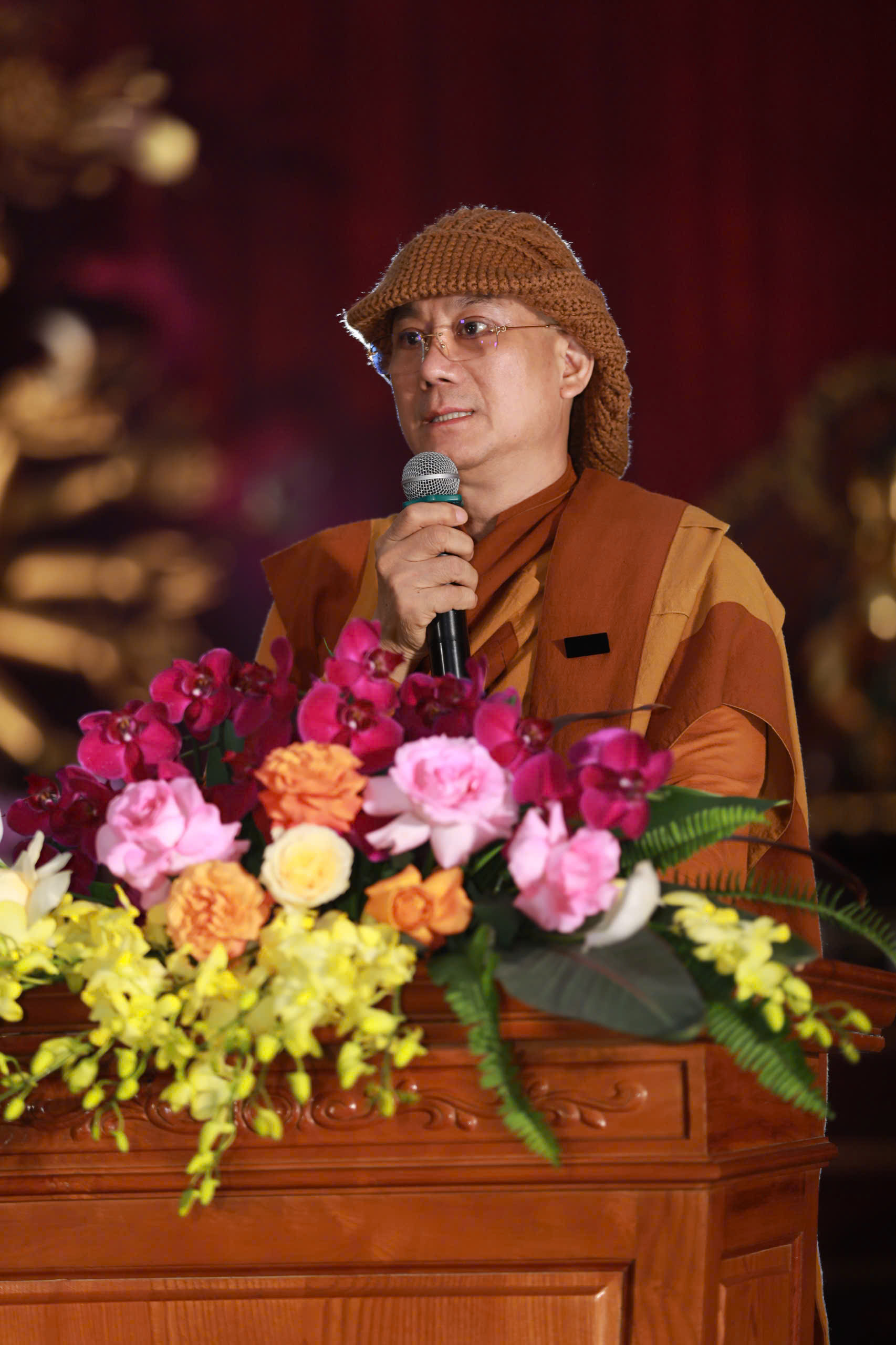 Thượng tọa Thích Minh Thanh phát biểu khai mạc Đêm nhạc gây quỹ từ thiện ủng hộ đồng bào miền Trung