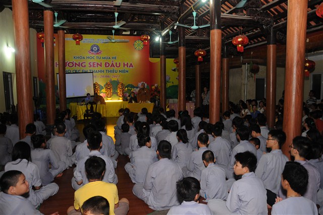 Chứng minh và tham dự buổi lễ có ĐĐ. Thích Tánh Khả – UV TT BTS – Trưởng ban Văn Hóa THPG Thanh Hóa, ĐĐ Thích Nhuận Nghĩa giáo thọ khóa tu, Sư Cô: Thích Đàm Chung – trụ trì chùa Phổ Linh – trưởng ban Tổ chức khóa tu cùng chư tăng tại các bổn tự và đủ các bậc phụ huynh và toàn thể khóa sinh tham dự khóa tu “ Hương Sen Đầu Hạ” – 2013