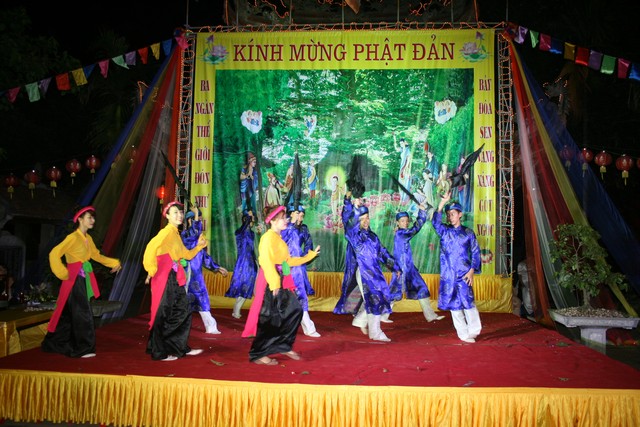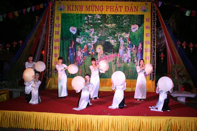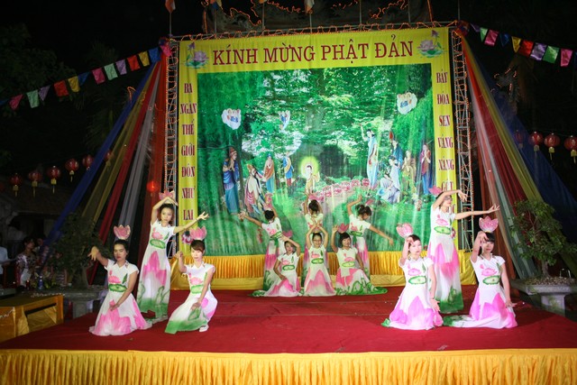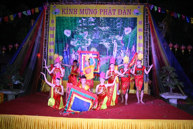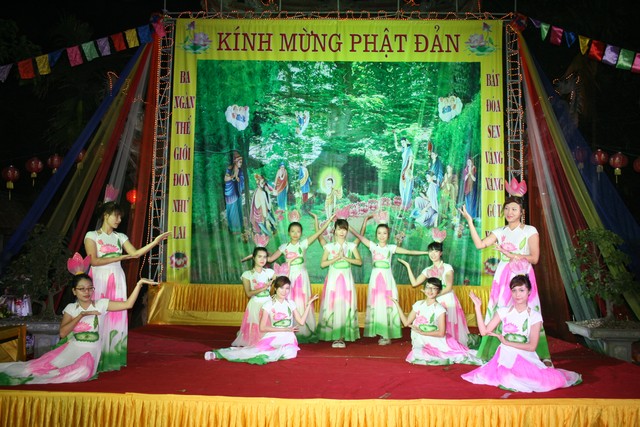 Đêm văn nghệ với nhiều tiết mục và ca khúc đặc sắc của các thành viên Thanh thiếu niên Phật tử cúng dường lên Đấng từ phụ nhân ngày Đản sinh.