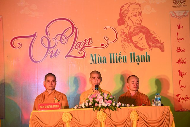 Thay mặt cho các Phật tử có mặt tại buổi lễ, một em thanh thiếu niên Phật tử chùa Thanh Tháp đã lên tuyên đọc bài “ Cảm Nghĩ Vu Lan“ đầy xúc động: “ Ai trong mỗi chúng ta sinh ra trong cõi đời này đều có cha và mẹ đều đó thật may mắn và diễm phúc biết bao. Được sự ấp ủ yêu thương chúng ta được truyền thừa hơi ấm từ cha lại được dưỡng nuôi bằng dòng sữa thơm lành của mẹ. Cha cho ta nghị lực sức mạnh và niềm tin để ta vững bước vào đời. Mẹ viết thêm cho ta tình thương yêu sự hòa ái vào mạch sống tương lai. Từ ngày mới chào đời mẹ và cha đã nâng nêu trìu mến, chăm chút cho ta từng miếng ăn giấc ngủ, lo lắng mỗi khi trái gió trở trời, sợ ta đau ốm cha mẹ lại chạy chữa thuốc thang. Lớn lên một chút ta được cha mẹ cho đến trường, được quen bạn bè thầy cô giáo mong sao con có kiến thức để mai này tự tin trước mọi thử thách, mọi lo toan bộn bề của cuộc sống. Những vất vả khó nhọc chỉ vì ta. Muốn ta được bằng bạn bằng bè. Vì con, cha bất chấp mọi hiểm nguy dù có trèo non lội biển để mang lại cho con sự đủ đầy và niềm hạnh phúc cha cũng chấp nhận. Vì con, mẹ tần tảo sớm hôm gian khó cũng chẳng màng, chỉ mong sao con bình an vô sự. Tình thương ấy, sự hi sinh ấy, hôm nay, ngày mai và mãi mãi về sau không bút mực nào tả siết. Cho dù có trải qua trăm vạn lần kiếp sống ta cũng không thể đáp đền thâm ân của hai đấng sanh thành.”
