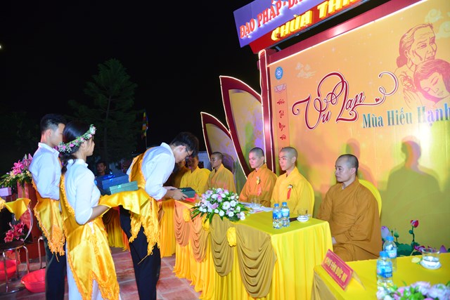 Mở đầu buổi lễ là một số tiết mục văn nghệ đặc sắc ca ngợi công ơn trời biển của cha mẹ, được trình bày qua giọng ca truyền cảm, ngọt ngào, sâu lắng của các ca sỹ đến từ thủ đô Hà Nội và thành phố Hải Phòng: ca sỹ Quán quân Giọng hát Việt 2019 Hoàng Đức Thịnh, ca sỹ Vũ Duy Khánh, ca sỹ Đình Bình, ca sỹ Nguyễn Ngọc Gia Bảo…Bằng tất cả tấm lòng thành kính, các ca sỹ đã dâng trọn tình cảm của mình kính dâng lên Tam Bảo và hai đấng sinh thành nhân mùa Vu lan Báo hiếu.