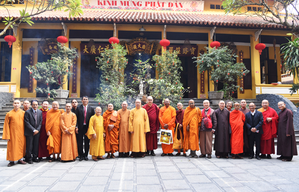 Tiếp đoàn có Hòa thượng Thích Thanh nhiễu – Phó Chủ tịch thường trực HĐTS GHPGVN; Thượng tọa Thích Đức Thiện – Phó chủ tịch – Tổng thư ký HĐTS – Trưởng ban Ban Phật giáo Quốc tế GHPGVN; Hòa thượng Thích Thanh Điện – Phó tổng thư ký HĐTS – Chánh văn phòng I TƯ GHPGVN; TT. Thích Nhật Từ – UVHĐTS – Phó trưởng ban Phật giáo Quốc tế GHPGVN; Hoà thượng Thích Bửu Chánh – Uỷ viên thường trực HĐTS, Phó trưởng Ban giáo dục Phật giáo TƯ GHPGVN; TT. Thích Thanh Huân – Ủy viên thường trực HĐTS – Phó văn phòng I TƯ GHPGVN; TT Thích Giác Hiệp – Ủy viên HĐTS TƯ GHPGVN cùng chư tôn đức Văn phòng I TƯ GHPGVN.
