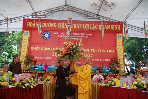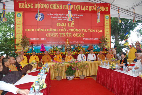 Tại buổi lễ TT Thích Thanh Nhã – Phó BTS Thành hội Phật giáo Hà Nội, trụ trì chùa Trấn Quốc đã giới thiệu lịch sử của ngôi chùa.