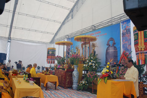 Tại buổi lễ ông Trương Công Đức – trưởng ban quản lý di tích phủ Tây Hồ phát biểu khai mạc và nói ý nghĩa đúc chuông tại Phủ Tây Hồ.
