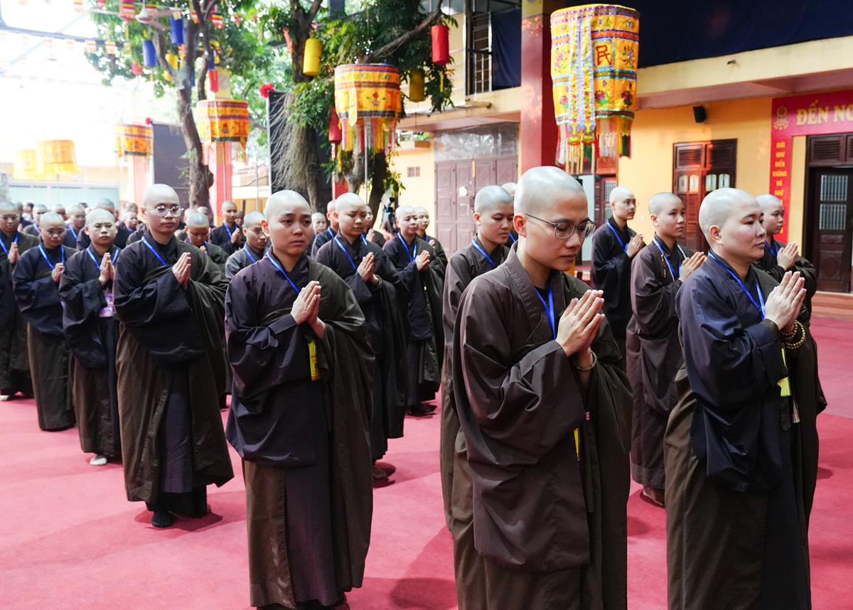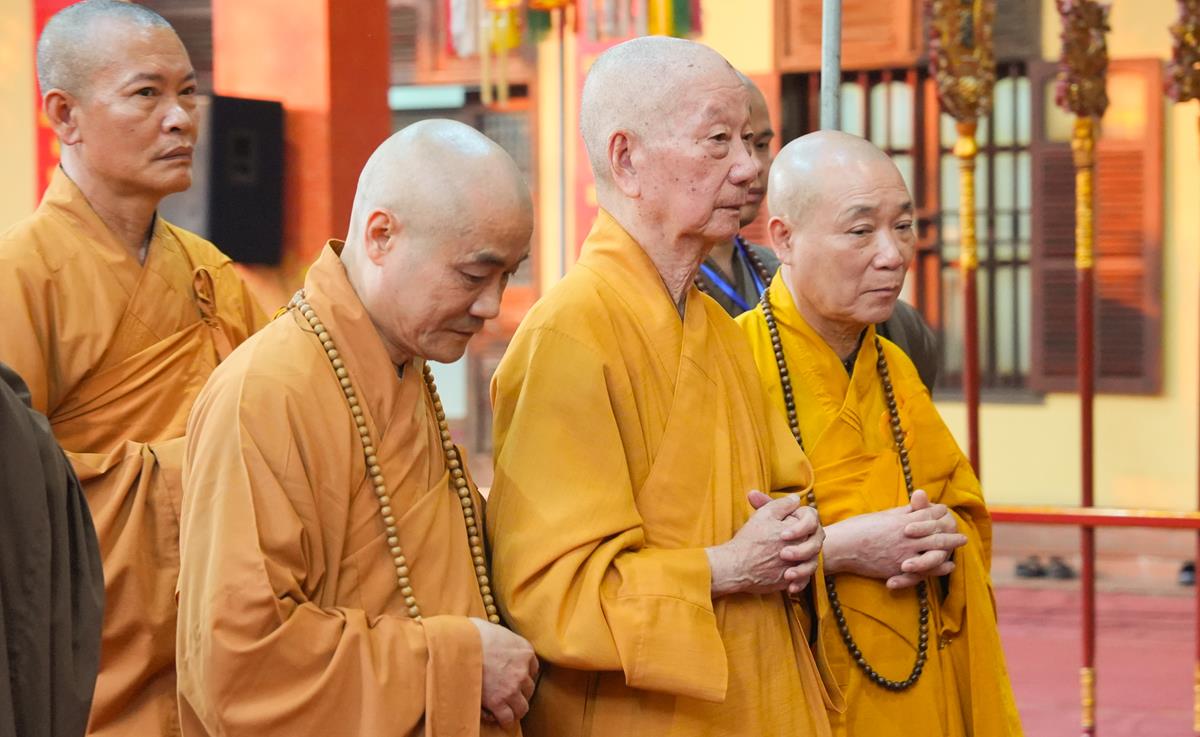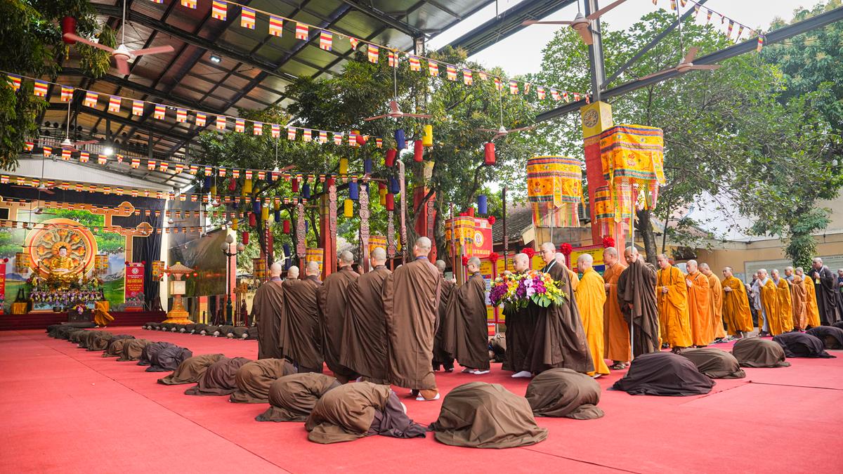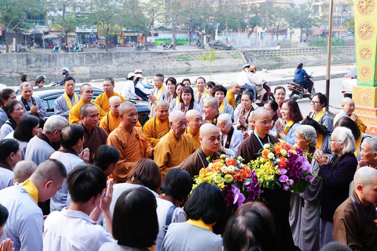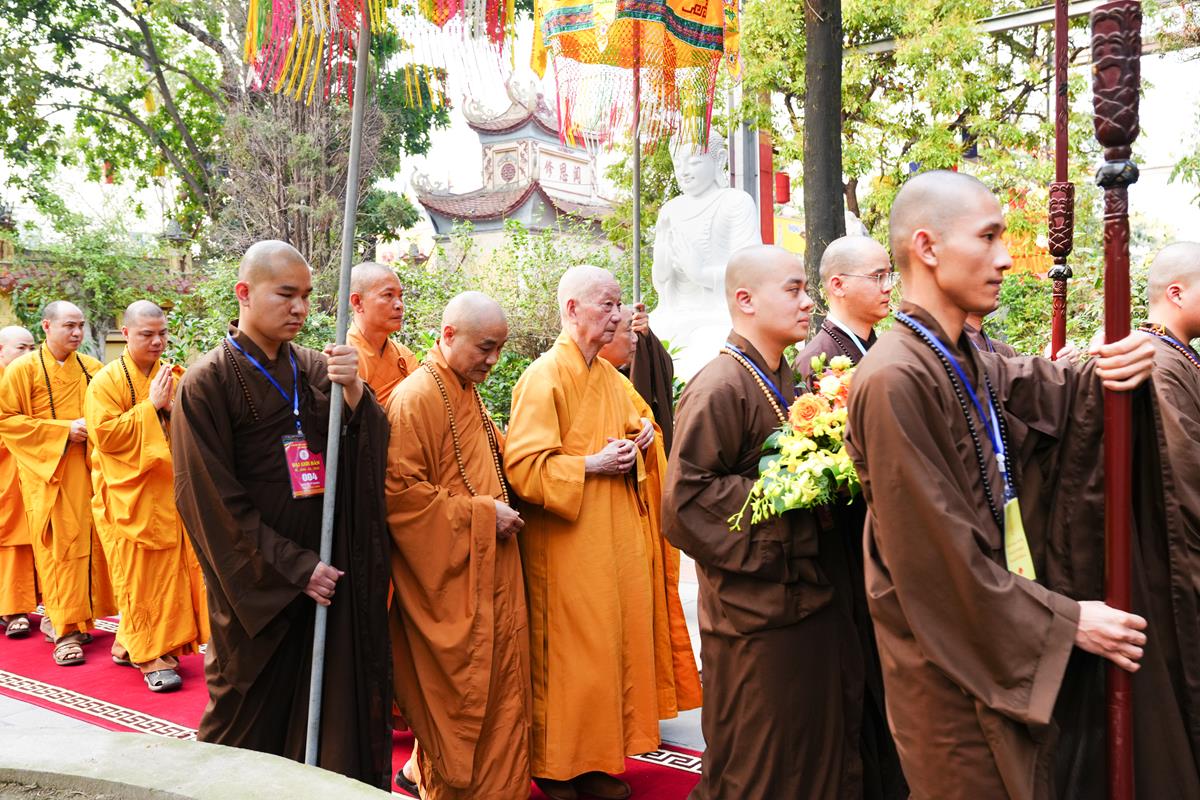 Tại đây, Hòa thượng Thích Bảo Nghiêm – Phó chủ tịch HĐTS, Trưởng Ban Hoằng pháp TW, Trưởng BTS GHPGVN thành phố Hà Nội, Trưởng Ban tổ chức đã cùng chư Tôn đức BTS, Ban kiến đàn, đại diện hai hội đồng Giới sư, đại diện Nghiệp sư cùng các Giới tử đã vân tập đỉnh lễ bái chào Đức Đệ tứ Pháp Chủ GHPGVN theo nghi thức truyền thống thiền môn phía Bắc.