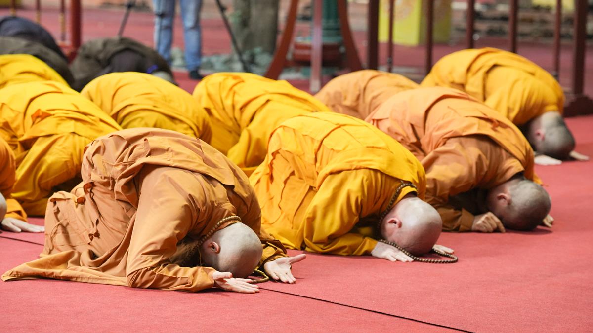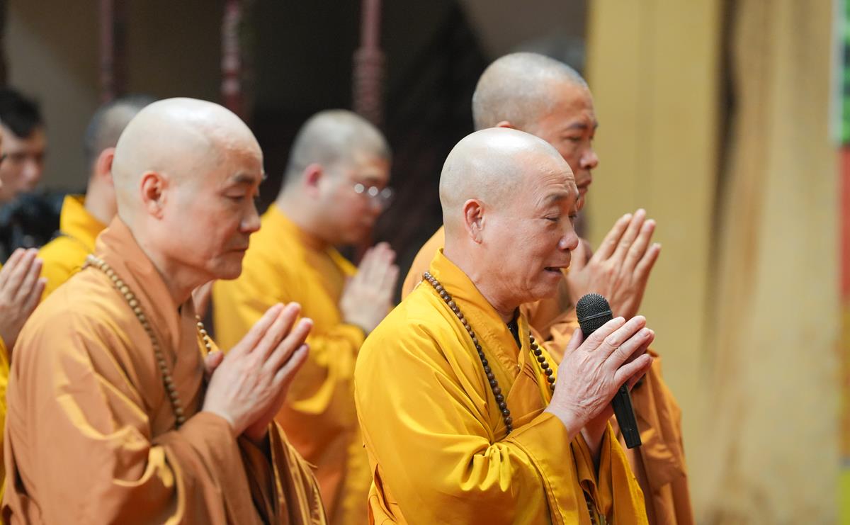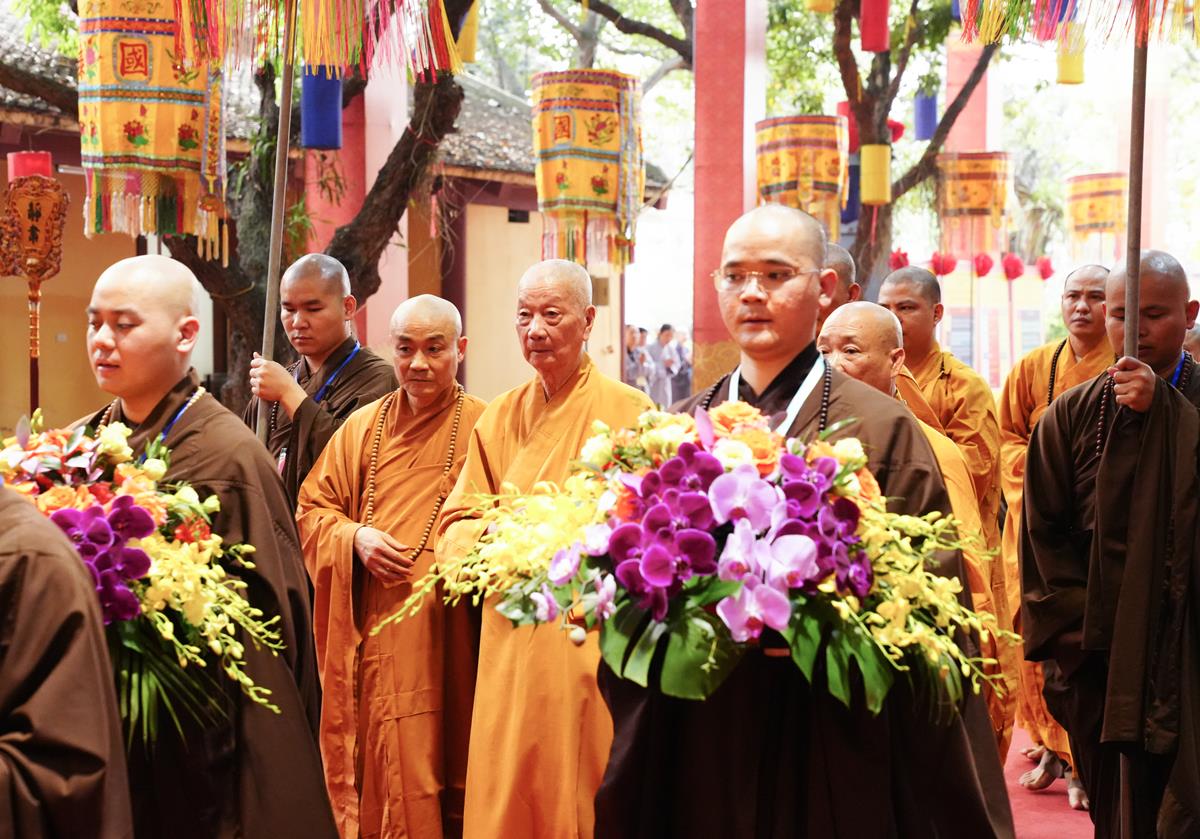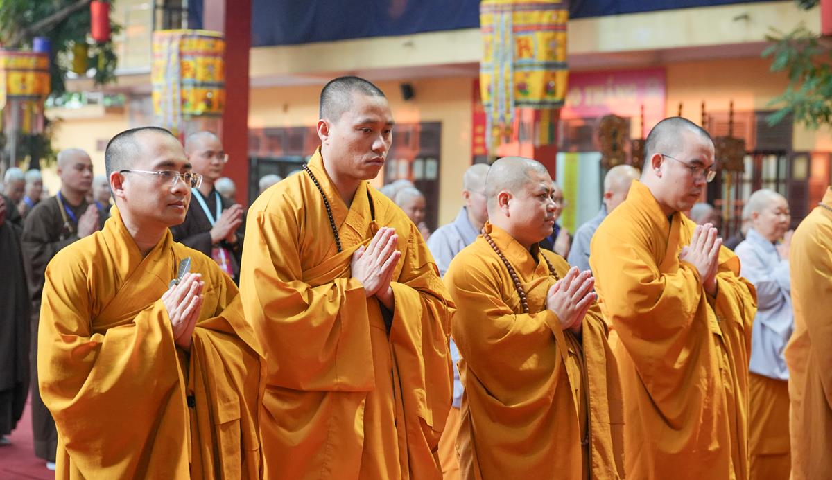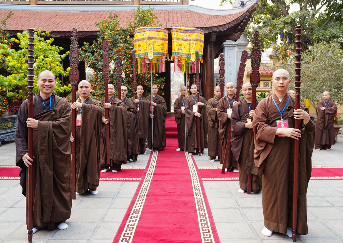 Tại đây, Hòa thượng Thích Bảo Nghiêm – Phó chủ tịch HĐTS, Trưởng Ban Hoằng pháp TW, Trưởng BTS GHPGVN thành phố Hà Nội, Trưởng Ban tổ chức đã cùng chư Tôn đức BTS, Ban kiến đàn, đại diện hai hội đồng Giới sư, đại diện Nghiệp sư cùng các Giới tử đã vân tập đỉnh lễ bái chào Đức Đệ tứ Pháp Chủ GHPGVN theo nghi thức truyền thống thiền môn phía Bắc.