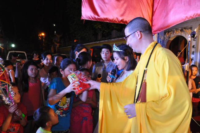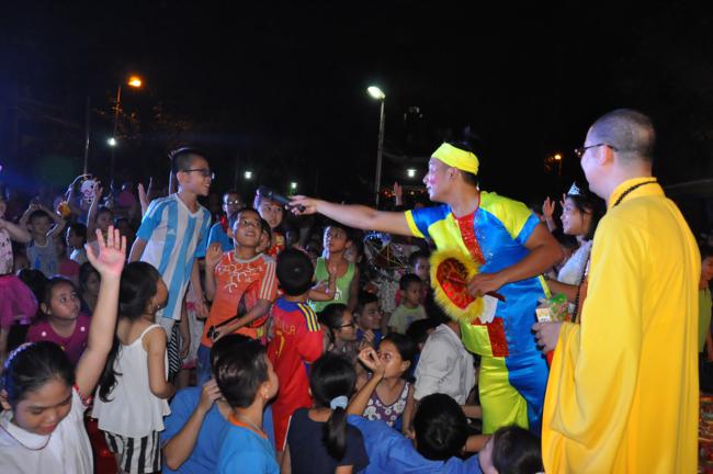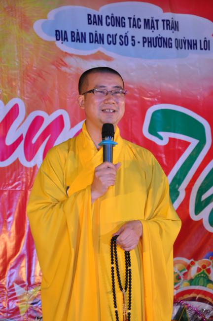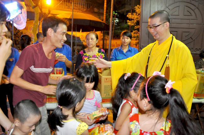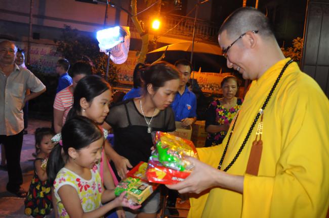 Sau đó, Đại đức trụ trì Thích Đạo Thông đã phát biểu khai mạc buổi lễ trong niềm hân hoan của các em thiếu niên nhi đồng. Đại đức nhấn mạnh hoạt động tổ chức trung thu cho các cháu, ngoài việc thể hiện tinh thần nhập thế của Đạo Phật, “phục vụ chúng sinh là thiết thực cúng dàng chư Phật”, cũng chính là vâng theo lời dạy của Đức Pháp Chủ TW GHPGVN là phải quan tâm hơn nữa tới thế hệ trẻ – những chủ nhân tương lai của đất nước. Trong nhiều năm qua, Đại đức luôn duy trì những hoạt động hướng tới lớp trẻ rất cụ thể và ý nghĩa như đón tết trung thu, quốc tế thiếu nhi 1-6…Các chương trình đều nhận được sự ủng hộ của các cấp chính quyền sở tại và các bậc phụ huynh, các em thiếu niên nhi đồng trên địa bàn phường Quỳnh Lôi nói riêng và quận Hai Bà Trưng nói chung. Nhân dịp này, Đại đức trụ trì cũng gửi lời chúc tới các em một mùa trung thu vui vẻ, tràn ngập niềm vui tiếng cười và mong các em sẽ ngày càng chăm ngoan và học giỏi để mai sau cống hiến cho quê hương, đất nước.