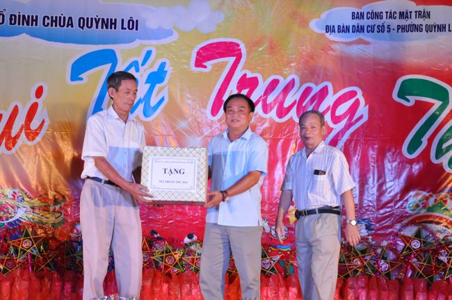 Trước khi chính thức bước vào chương trình, Ông Trần Văn Giáp – Phó bí thư chi bộ, Trưởng Ban công tác Mặt trận địa bàn dân cư số 5 phường Quỳnh Lôi đã thay mặt lãnh đạo địa bàn dân cư lên phát biểu và đọc thư chúc Tết trung thu của Chủ tịch nước Trần Đại Quang.