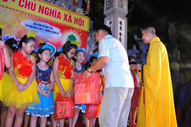 Cuối chương trình, các em thiếu nhi đã được nhận những phần quà nhỏ nhưng rất ý nghĩa, là tấm lòng của chư tôn đức Tăng chùa Quỳnh Lôi gửi tặng nhân dịp Tết đoàn viên. Chương trình “Vui Tết Trung Thu” đã hoàn mãn trong niềm hân hoan, hạnh phúc của trẻ nhỏ, của những ánh mắt rạng ngời sáng bừng những khuôn mặt non trẻ, và những nụ cười giòn tan cứ vang khắp không gian…