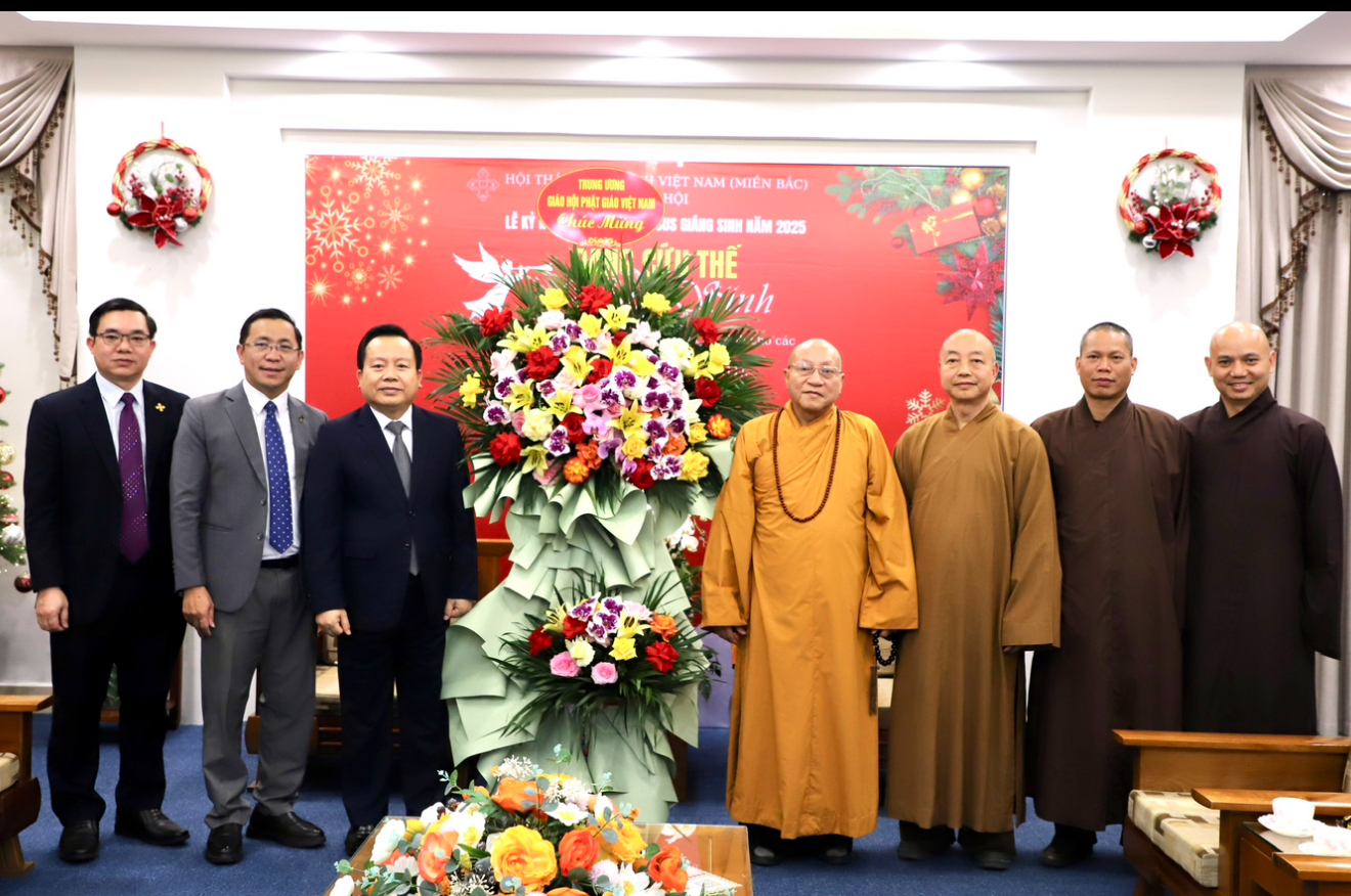 Nhân dịp này phái đoàn TƯ GHPGVN đã gửi tặng lẵng hoa chúc mừng trong niềm hỷ lạc vô biên, gửi lời chúc mừng Tổng hội Thánh tin lành Việt Nam (miền Bắc) đón một mùa Giáng sinh an lành và hạnh phúc.