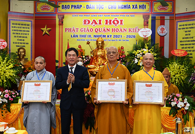 Ủy ban MTTQ Việt Nam TP Hà Nội tặng Bằng khen tới tập thể BTS GHPGVN quận Hoàn Kiếm và các Tăng Ni đã có thành tích trong sự nghiệp xây dựng khối Đại đoàn kết toàn dân giai đoạn 2016 – 2021.