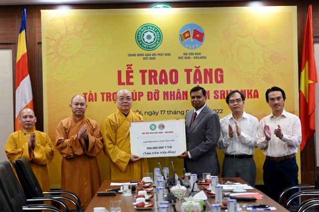 Ngày 17/6, tại trụ sở Trung ương Giáo hội Phật giáo Việt nam 73 phố Quán Sứ – Hà Nội. GHPGVN tổ chức lễ trao tặng tài trợ, giúp đỡ nhân dân Sri Lanka vượt qua khó khăn do ảnh hưởng của cuộc khủng hoảng kinh tế, chính trị tại đất nước này.