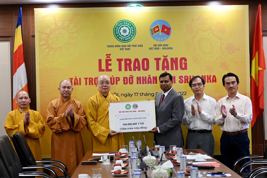 Với tình cảm đặc biệt này, GHPGVN tổ chức lễ trao tặng tài trợ gồm 500 triệu đồng của GHPGVN, 20.000 USD của Phật tử chùa Bái Đính (Ninh Bình) và 50 triệu đồng của thành viên Hội Hữu nghị Việt Nam – Sri Lanka. Món quà tuy không lớn nhưng thể hiện tình cảm chân thành, giúp đỡ nhân dân Sri Lanka, góp phần thắt chặt mối quan hệ và tình đoàn kết giữa nhân dân hai nước.