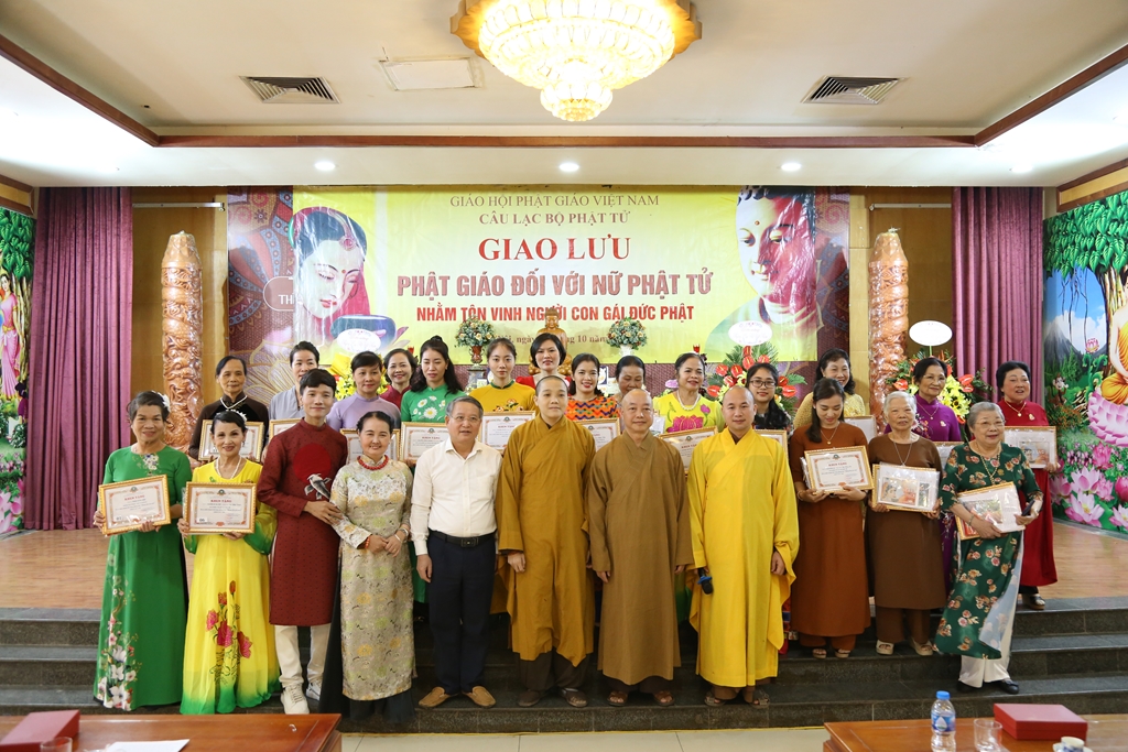 Nhân dịp này, để ghi nhận và chúc mừng những đóng góp của các nữ Phật tử đã có những thành tích xuất sắc trong công tác Phật sự, Ban Hướng dẫn Phật tử TƯ GHPGVN đã tặng nhiều bằng tuyên dương công đức. Tại buổi giao lưu còn có các tiết mục văn nghệ do các CLB như Phật tử biểu diễn chào mừng.