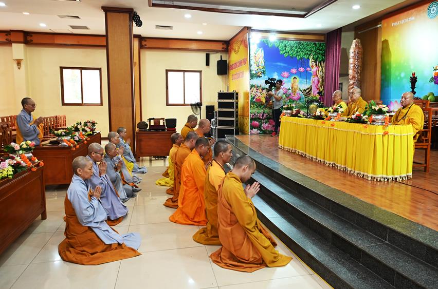 Tại buổi lễ, chư tôn đức chư Tăng Ni hạ trường dâng lời tác bạch, lễ tạ chư tôn đức Ban Giảng sư, tri ân tới Phật tử đã hộ trì cho chư Tăng Ni an cư viên mãn trong ba tháng.