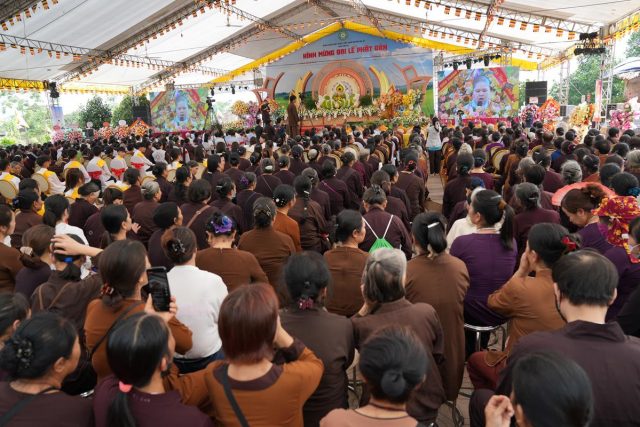 Sau nghi lễ niệm Phật cầu gia hộ, trong không khí đại hoan hỷ, toàn thể Tăng Ni, quý quan khách và Phật tử trang nghiêm lắng nghe Hòa thượng Thích Bảo Nghiêm tuyên đọc Thông điệp Đại lễ Phật đản Phật lịch 2568 của Đức Pháp chủ GHPGVN. Tiếp đó, Thượng tọa Thích Đạo Thịnh tuyên đọc diễn văn Phật đản của Trưởng lão Hòa thượng Chủ tịch Hội đồng Trị sự GHPGVN.
