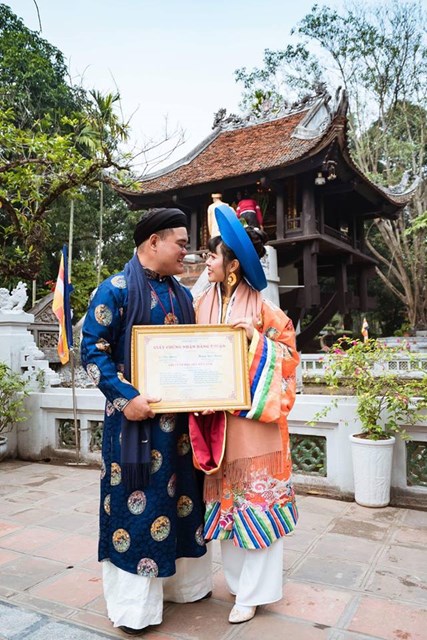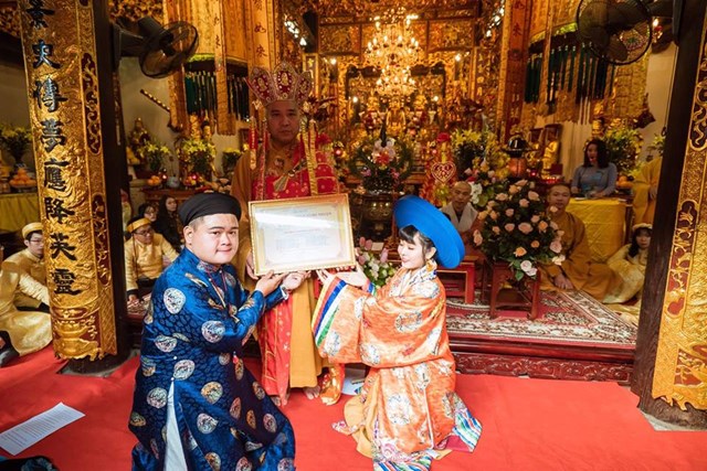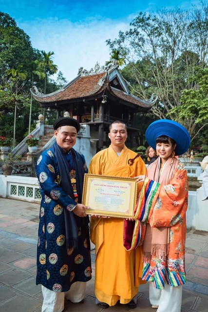 Đôi bạn trẻ đón nhận giấy chứng nhận Hằng thuận từ Thượng tọa trụ trì
