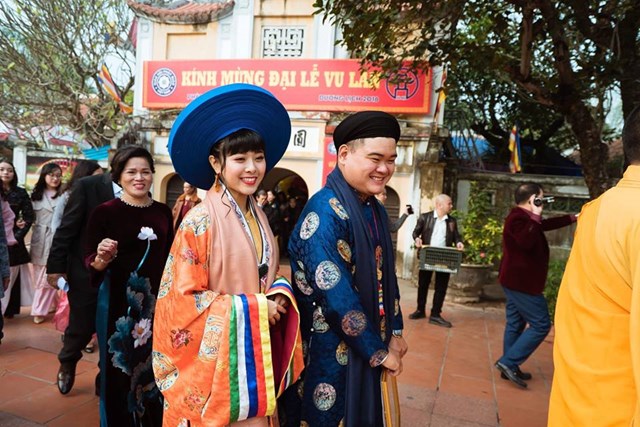 Kết thúc buổi lễ, chư tôn đức chứng minh, đôi tân lang, tân nương và hai bên gia đình đã thả bóng bay và thả chim bồ câu phóng sinh cầu nguyện thế giới hòa bình, chúng sinh an lạc và cầu nguyện cho đôi bạn trẻ được: “ Trăm năm tình viên mãn, bạc đầu nghĩa phu thê.”