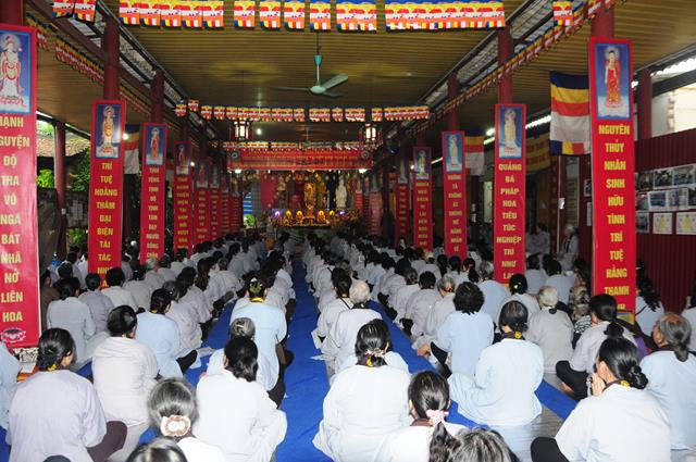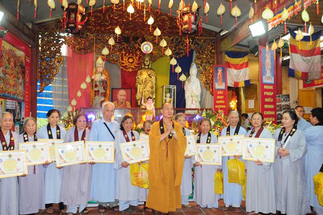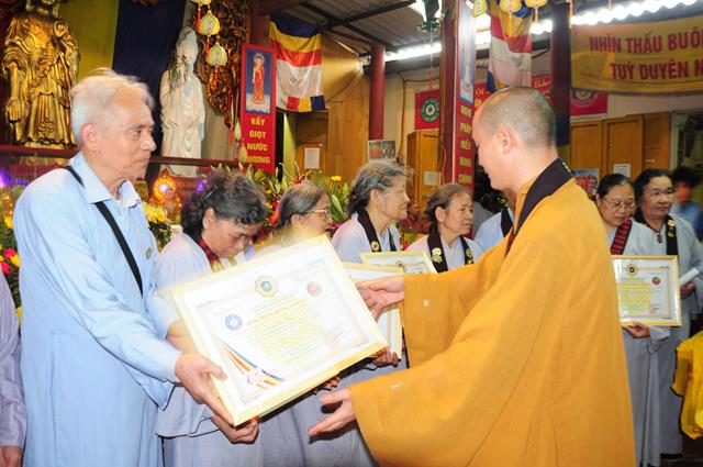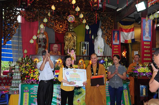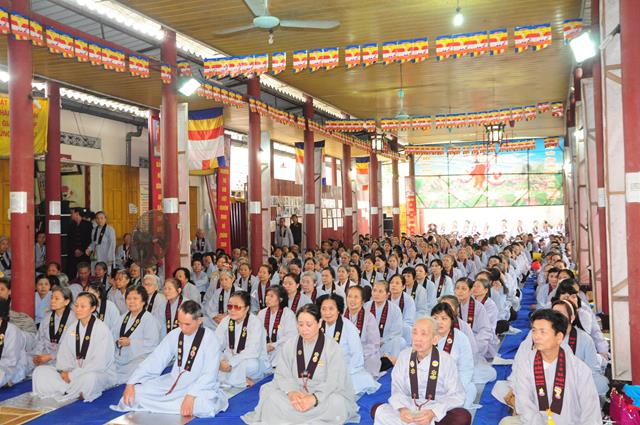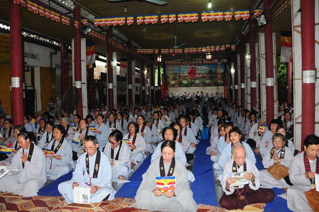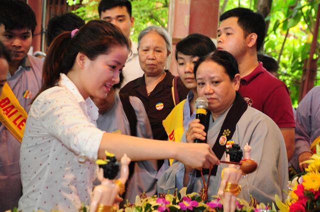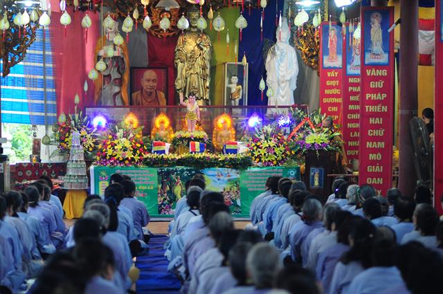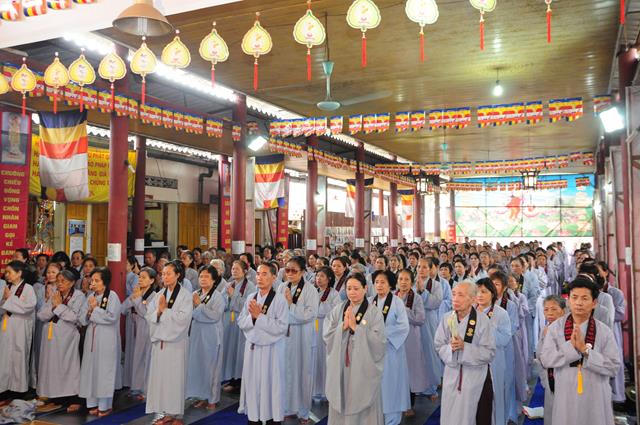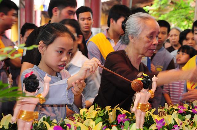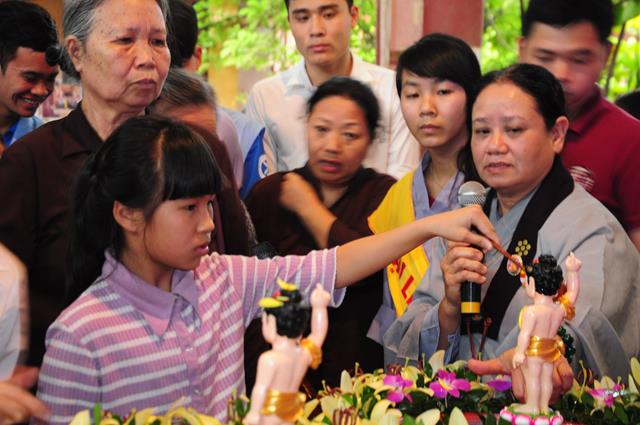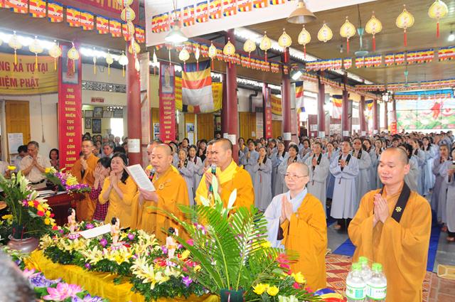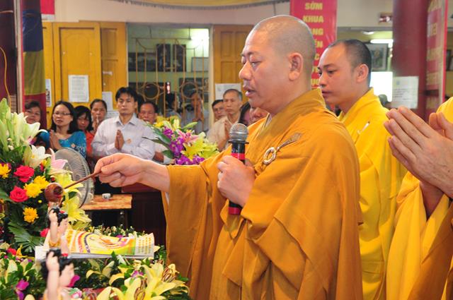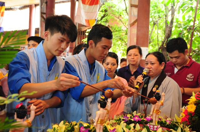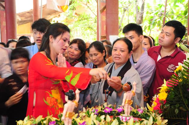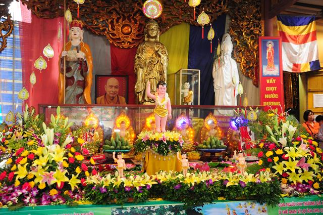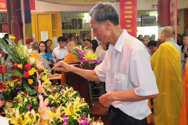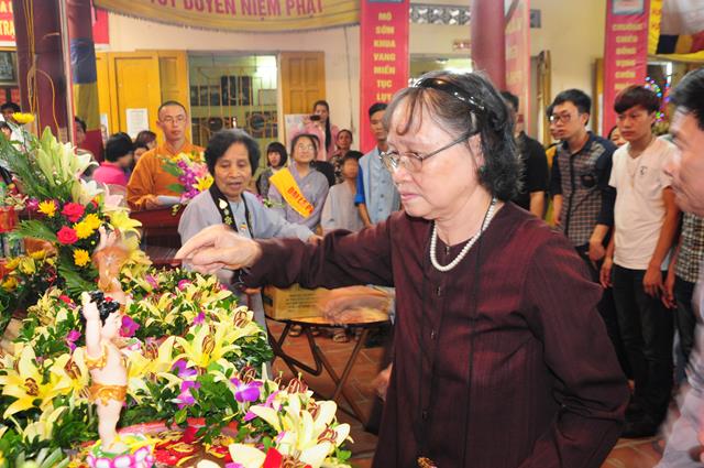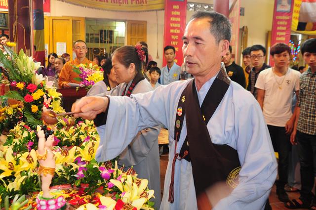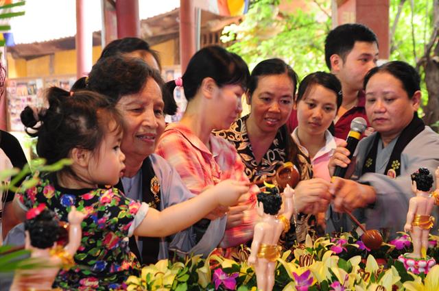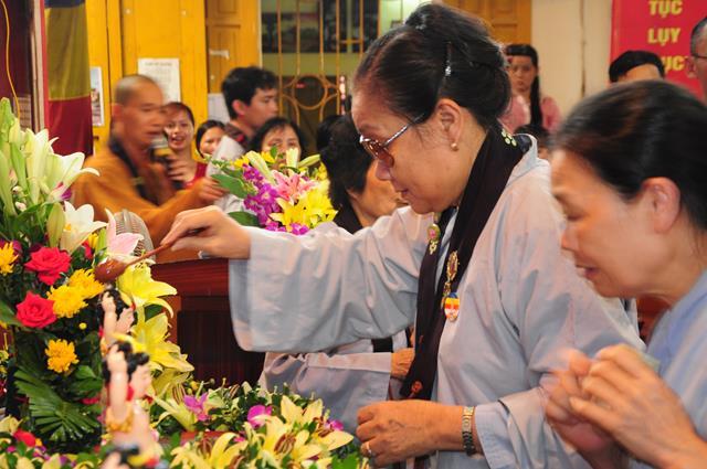 Kết thúc buổi lễ, Chư tôn đức Tăng Ni cùng các Phật tử có mặt trong Đạo tràng đã cử hành nghi lễ niêm hương, bạch Phật, cầu nguyện Thế giới hòa bình, chúng sinh an lạc và lễ tắm Phật trong không khí trang nghiêm, thành kính, ấm tình đạo vị.