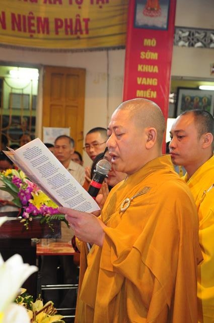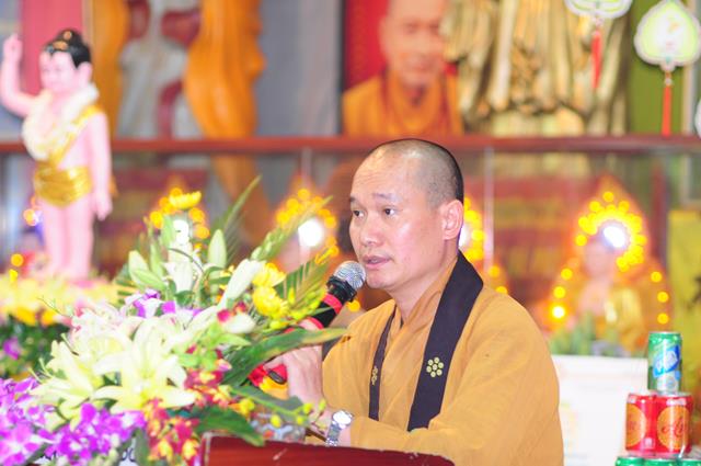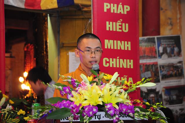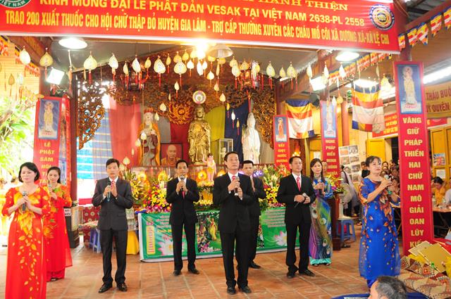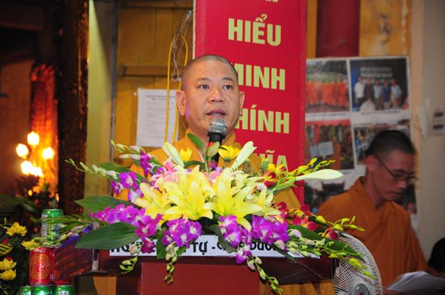 Mở đầu buổi lễ hành chính, ĐĐ. Thích Thanh Quy – Trưởng Ban trị sự GHPGVN huyện Gia Lâm đã lên tuyên đọc Thông điệp chúc mừng Phật Đản PL.2558, DL. 2014 của đức Pháp Chủ GHPGVN – Hòa Thượng Thích Phổ Tuệ ấn ký. Sau đó, NS. Thích Đàm Chí – Phó Ban trị sự GHPGVN huyện Gia Lâm đã cung tuyên Diễn văn Phật Đản PL.2558.