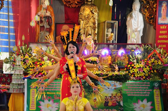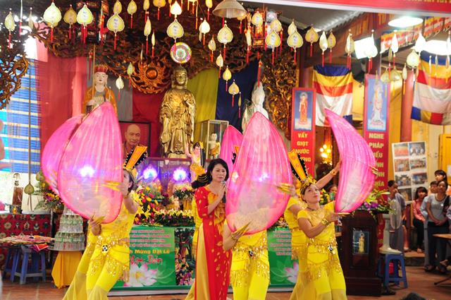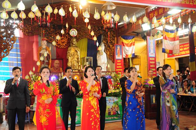 Tiếp đó, là một số tiết mục văn nghệ chào mừng do một số Phật tử đến từ thủ đô Hà Nội, nhóm nhạc Mùa thu xanh với các ca khúc ca ngợi công hạnh của đức Từ Phụ Thích Ca Mâu Ni nhân kỷ niệm 2638 năm ngày sinh của Ngài.