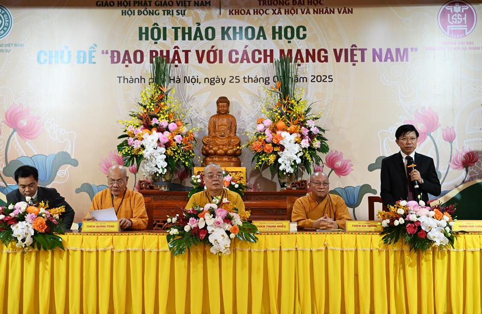 Trong không khí trang nghiêm và tự hào của toàn dân tộc đang hân hoan kỷ niệm 80 năm Cách mạng Tháng Tám thành công và Quốc khánh 2/9, Sáng ngày 25/8/2025 (3/7/Ất Tỵ) Trung ương Giáo hội Phật giáo Việt Nam (GHPGVN) và Trường Đại học Khoa học Xã hội và Nhân văn ( ĐHXH&NV), Đại học Quốc gia Hà Nội (ĐHQG) đồng tổ chức Hội thảo khoa học với chủ đề “Đạo Phật với Cách mạng Việt Nam” tại Hội trường Trụ sở Trung ương GHPGVN, Chùa Quán Sứ, số 73 phố Quán Sứ, phường Cửa Nam, Thành phố Hà Nội.